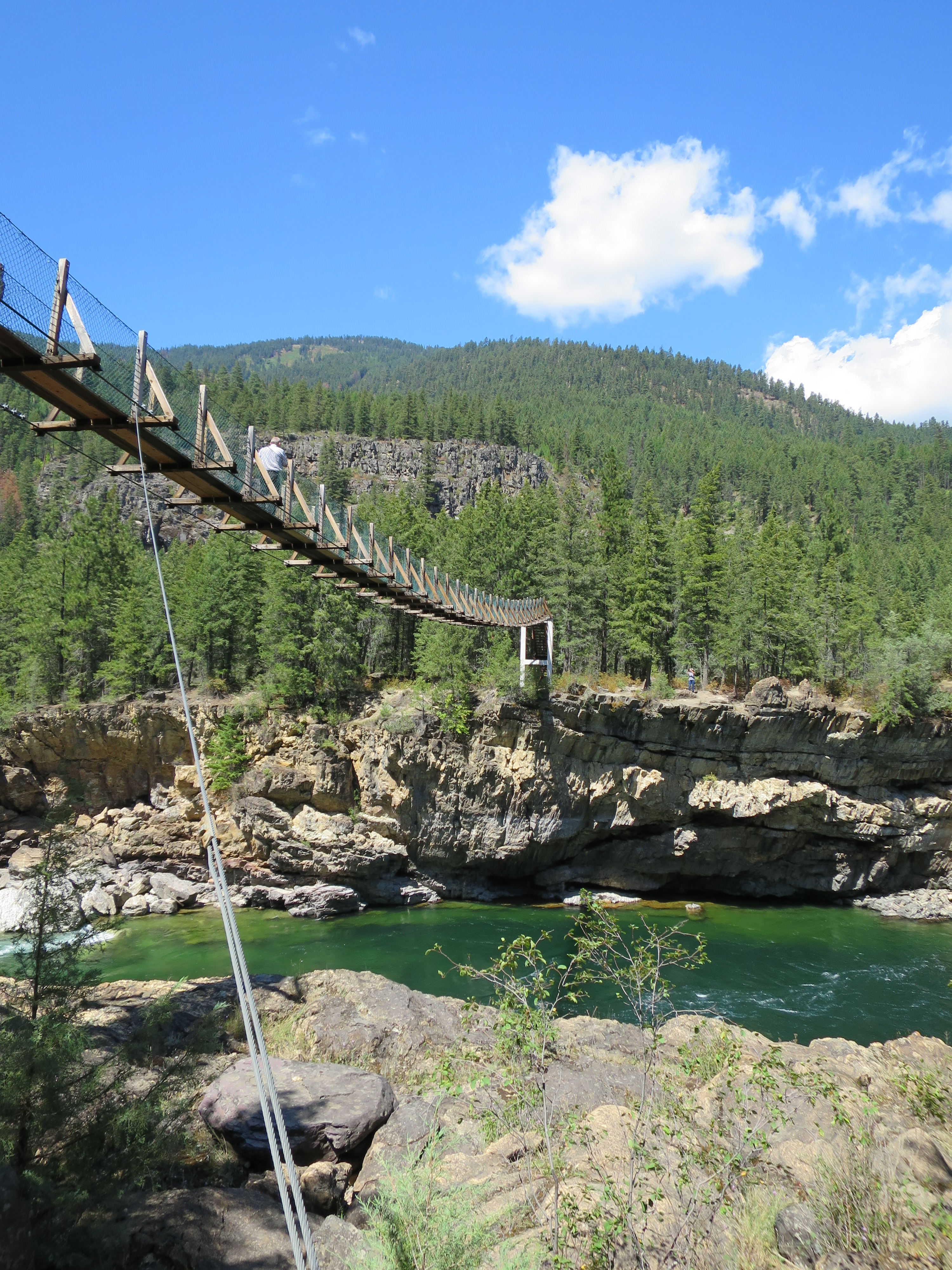 From the center, I decided two things. One, swinging bridges are not my favorite place to stand; and two, it’s probably smart to know the age of a sign that says “Limit of 5 people on bridge at a time”. A dog on the bridge with me agreed on at least the first point.